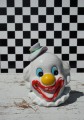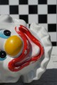 Wesoły klaun, skarbonka ceramiczna.Dość osobliwa ;-). Otwór zaklejony filcem.